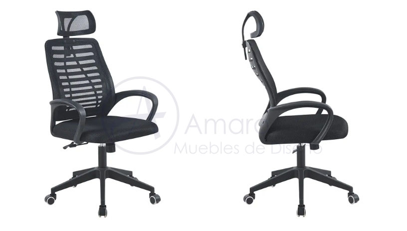 Silla ejecutiva CLASS, asiento tapizado en tela soft negra con goma espuma flexible para mayor durabilidad, estrella de 5 ramas negra con apoyabrazos fijos en PVC, respaldo en red negra de diseño elegante y moderno.