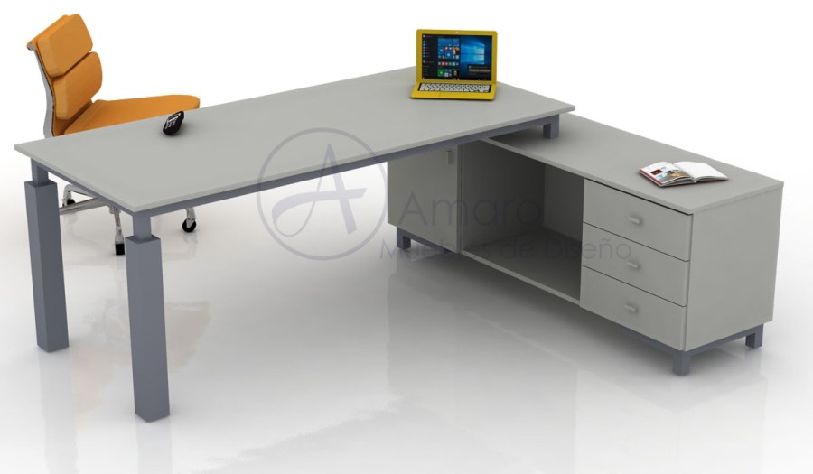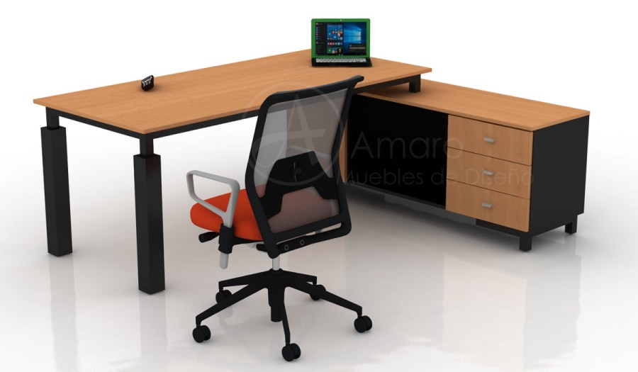 Escritorio con módulo: L180 x 140 x 75H, L200 x 140 x 75H (El largo total incluye el módulo que está desfazado 20cms)