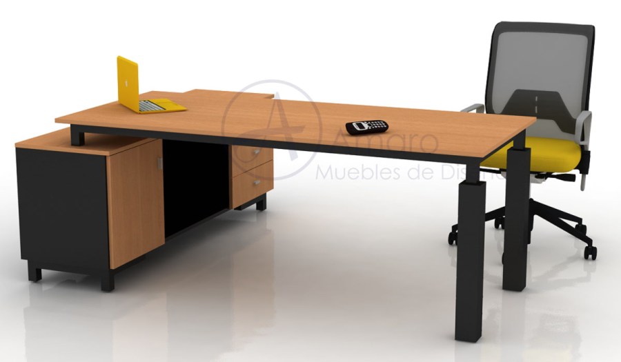 El escritorio gerencial CRAFT se destaca por tener un marco perimetral en la tapa y un módulo lateral con marco metálico, para brindar estabilidad y firmeza. Se compone de una estructura metálica artesanal única en el mercado, de hierro estructural y tapa con abs 2mm perimetral (opcional con borde biselado o veneciano).