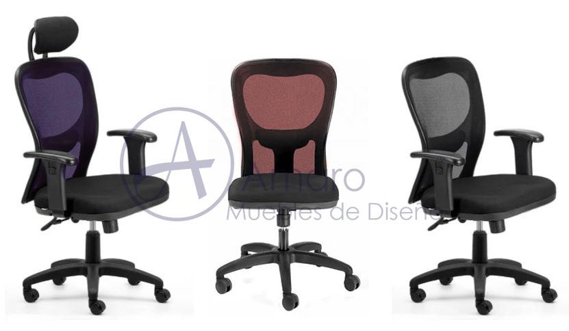 Silla gerencial DELHI Premium, asiento tapizado en tela o eco cuero de alta durabilidad y respaldo en red para mayor comodidad.