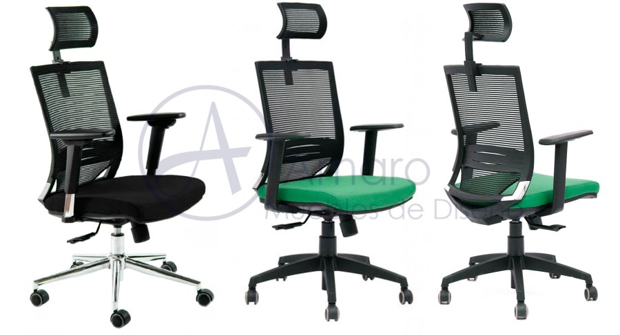 • Respaldo de Nylon, revestido con tela de red mesh lineal color negro.
