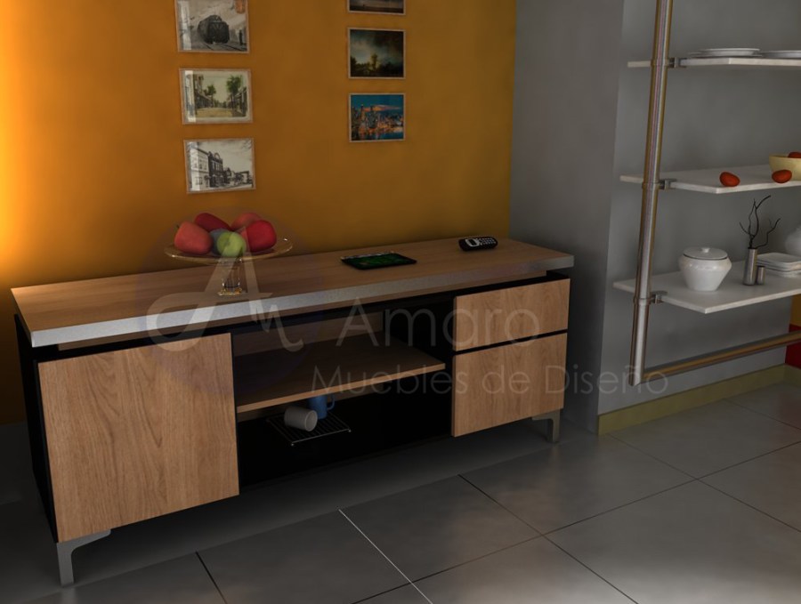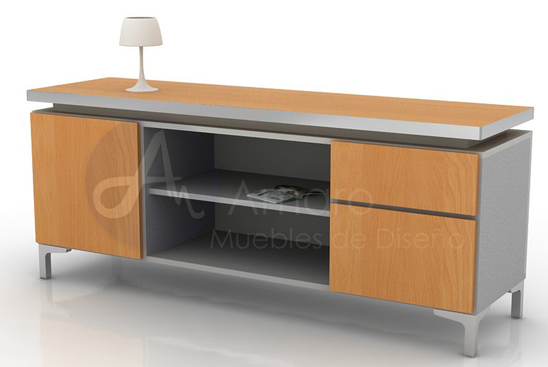 La tapa en melamina 36mm con un borde perimetral en aluminio anodizado y patas en aluminio pulido espejo, se puede combinar con cualquier espacio de trabajo. Frentes de cajonera y de puertas con borde biselado y melamina en 18mm con combinaciones infinitas.