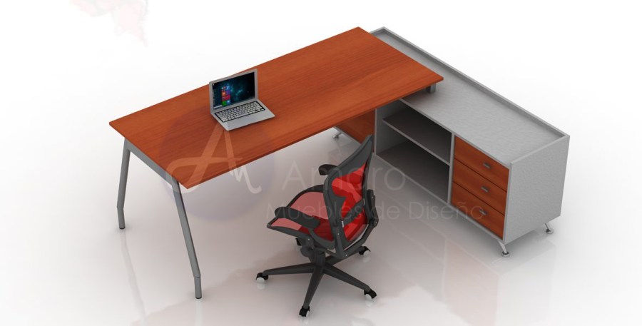 Los escritorios VODKA Gerencial son de elegante diseño y terminación, materiales de primera calidad. La combinación de hierro estructural, melamina y aluminio pulido realza el diseño y la composición haciéndolo adecuado para el ambiente Gerencial. El modulo de apoyo lateral está equipado con puertas, cajones y un espacio abierto.